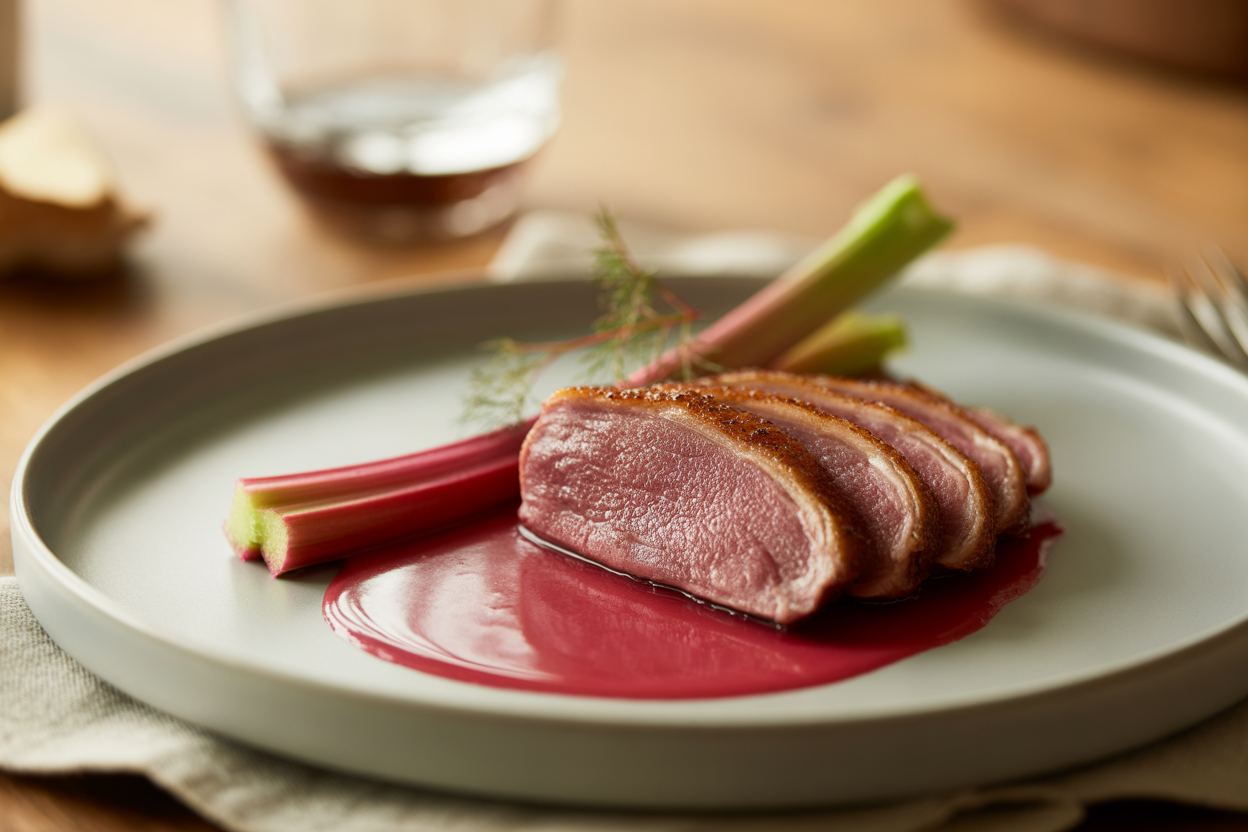 Un mariage réussi entre la richesse du canard et l'acidité de la rhubarbe. Deux préparations complémentaires qui font de ce plat une véritable belle surprise en assiette.