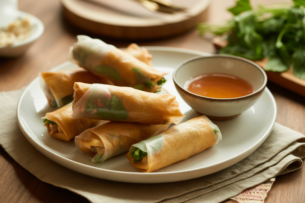 Des nems croustillants garnis de vermicelles de riz, protéines de soja et légumes sautés. Une entrée végétarienne savoureuse et facile à préparer pour impressionner vos convives.