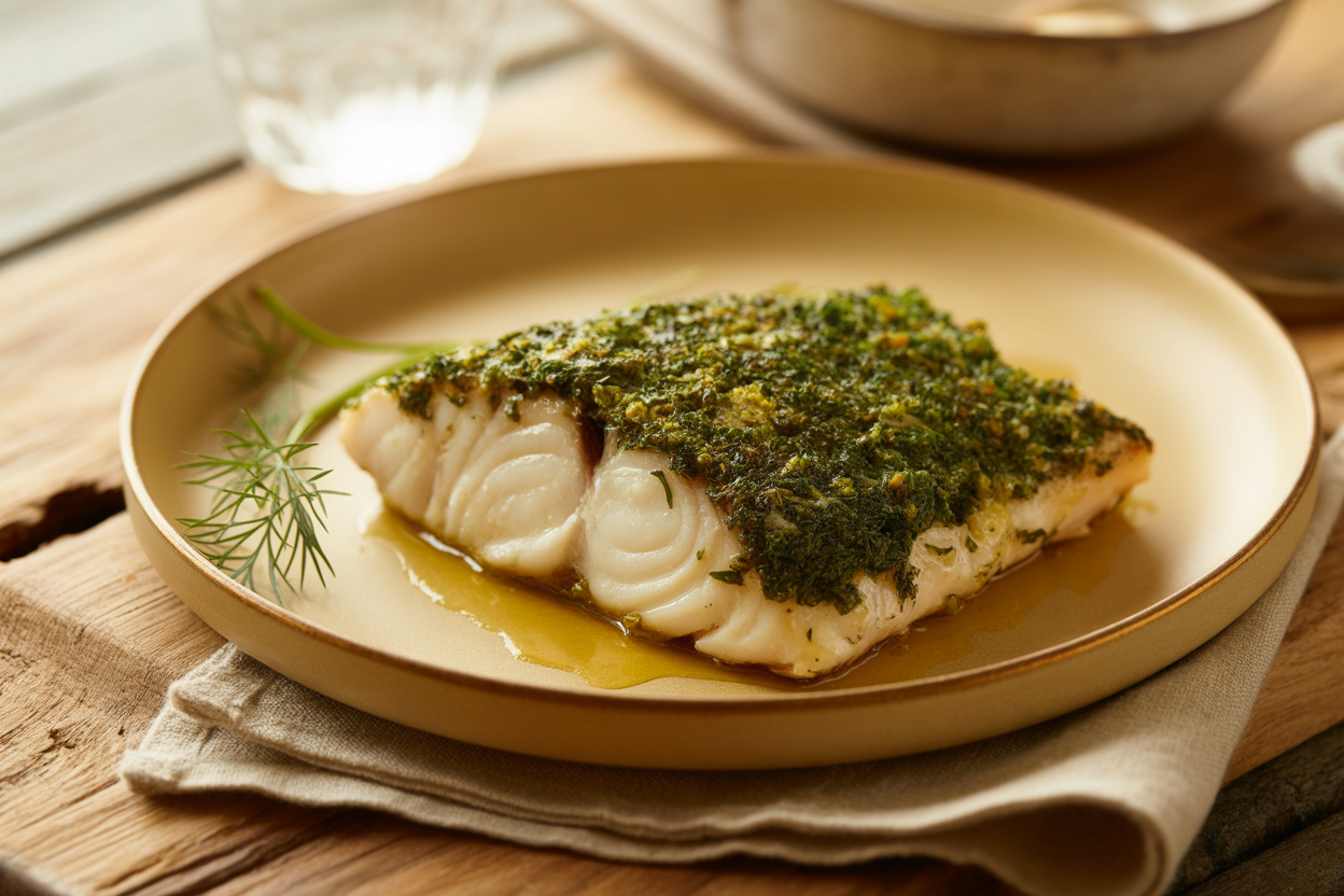 Un pavé de poisson blanc croustillant, enrobé d'une croûte dorée aux herbes fraîches. Une recette rapide et élégante, parfaite pour un dîner en semaine.