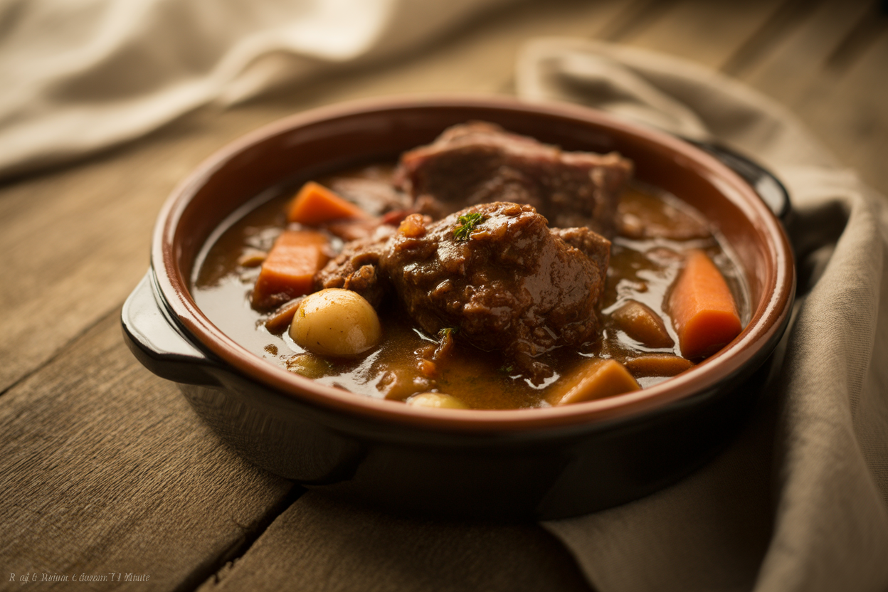 Un ragoût généreux et réconfortant, prêt en moins d'une heure. La viande tendre se marie parfaitement avec les carottes et le vin rouge pour un plat familial sans prise de tête.