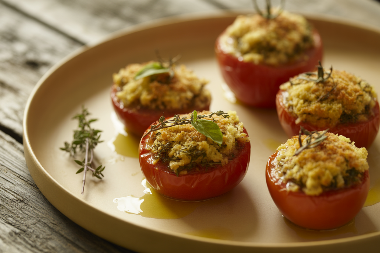 Des tomates généreuses garnies d'un mélange parfumé à l'ail, persil et thym, cuites à la vapeur en quelques minutes. Un accompagnement léger et méditerranéen qui ravira vos papilles.