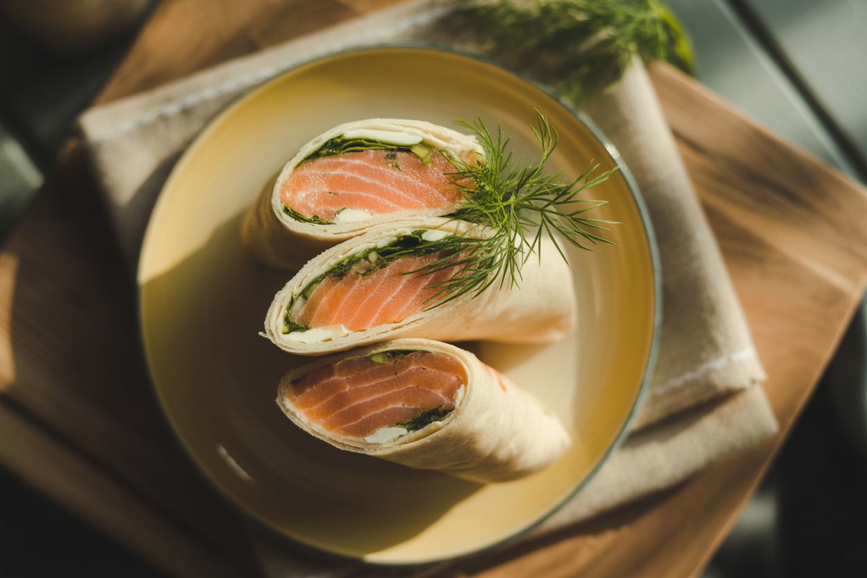 Une recette ultra-rapide et fraîche pour l'apéro ou un repas léger. Les wraps se préparent en deux minutes à peine, parfaits quand on n'a pas envie de cuisiner.